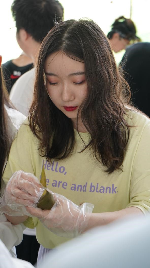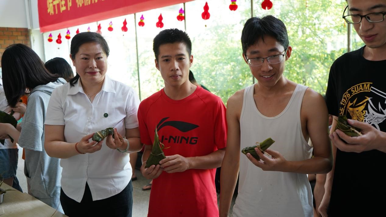 现场师生在欢声笑语中一起动手包粽子、吃粽子,共同沉浸在浓厚的端午文化和浓浓的师生情之中。在场的同学们纷纷表示:“从未亲手包过粽子,虽然包的不太好,但是通过学习粽叶叠法、绑绳技巧,既掌握了生活本领,又能切身体会传统文化,提升了大家在校学习生活的幸福感和获得感。”