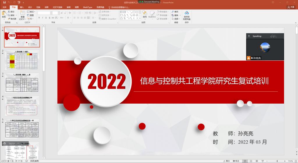 4月9日,信息与控制工程学院2022年硕士研究生招生线上远程复试工作圆满落下帷幕,全程历时13天,21个“云”端考场,260人次进入复试考核,经过层层选拔最终176名准“研控”们即将在金秋九月踏进沈阳建筑大学的校园开启精彩“研途”。