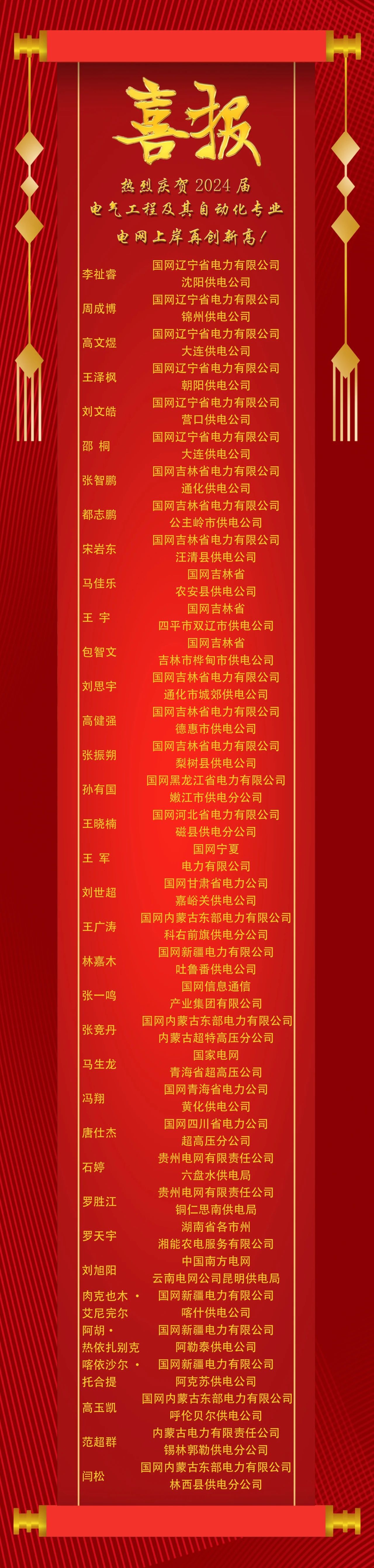 2024届电气工程及其自动化专业电网上岸36人,