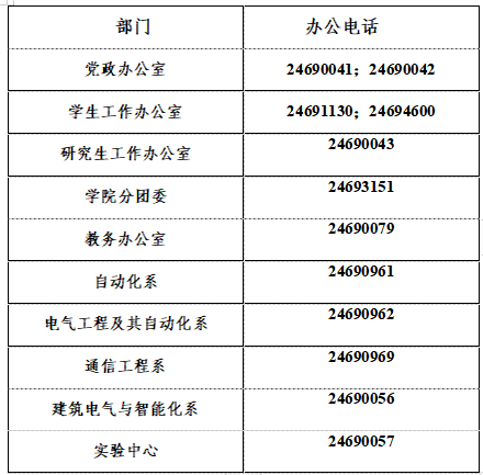 电气学院办公电话一览表