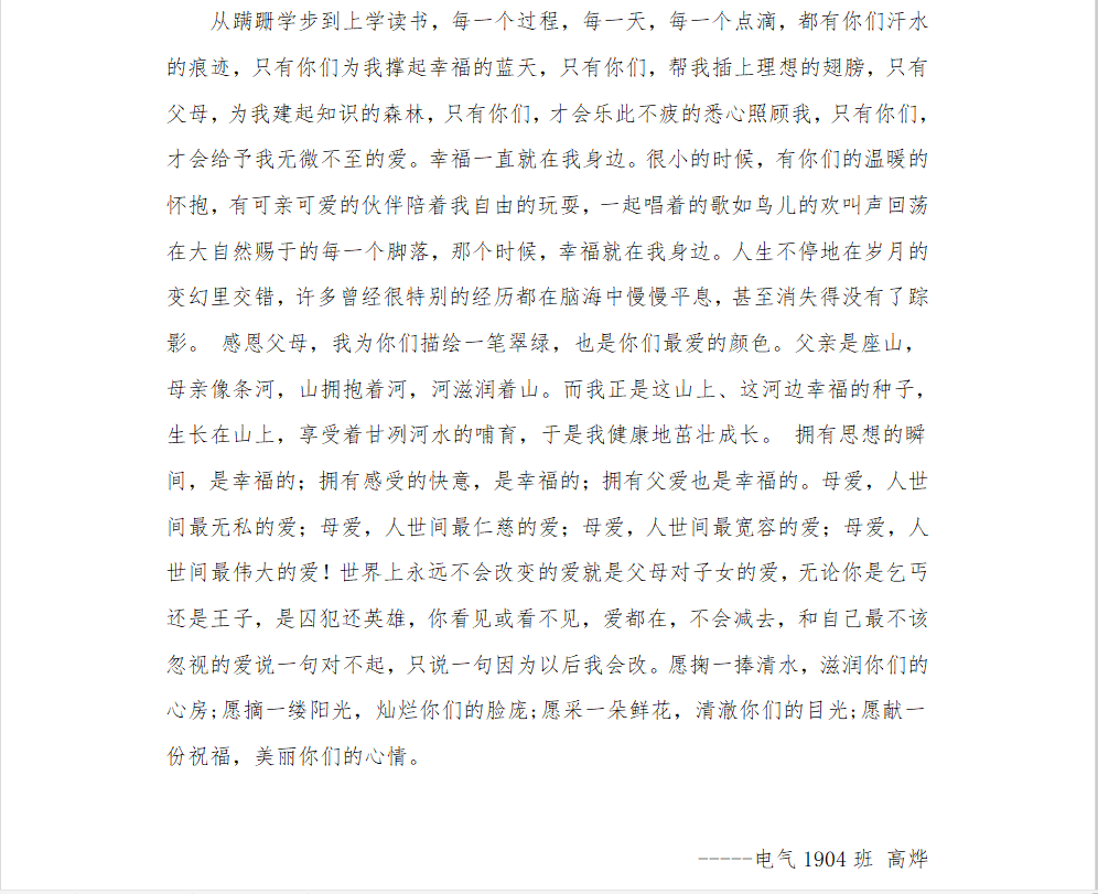 本次活动积极倡导同学们,在做好自身防护工作、齐心抗击疫情的同时,感恩父母、陪伴父母。父母渐渐老去,他们更需要我们的关心和交流,子女每一次小小的举动,都会给他们带来幸福。此次疫情也提醒了我们要珍惜与家人在一起的时间,父母陪我们长大,我们陪伴他们变老。信息学子在抗击疫情期间,主动帮助父母做一些力所能及的事情:为父母洗一次脚、送一杯暖心的茶、做一顿饭等这些点滴小事,用实际行动展现了陪伴是最长情的告白。同学们将这些感动的美好瞬间以录视频或拍摄照片的形式记录下来。也有些腼腆的同学平常不好意思直面父母去表达爱意,也借助这次活动,录下自己想对父母说的话,以这样的形式来表达自己的情感。最后用一张与父母的合影记录这个美好而又温馨的时刻,用照片上父母的笑容提醒自己,陪伴是对他们最好的回报。