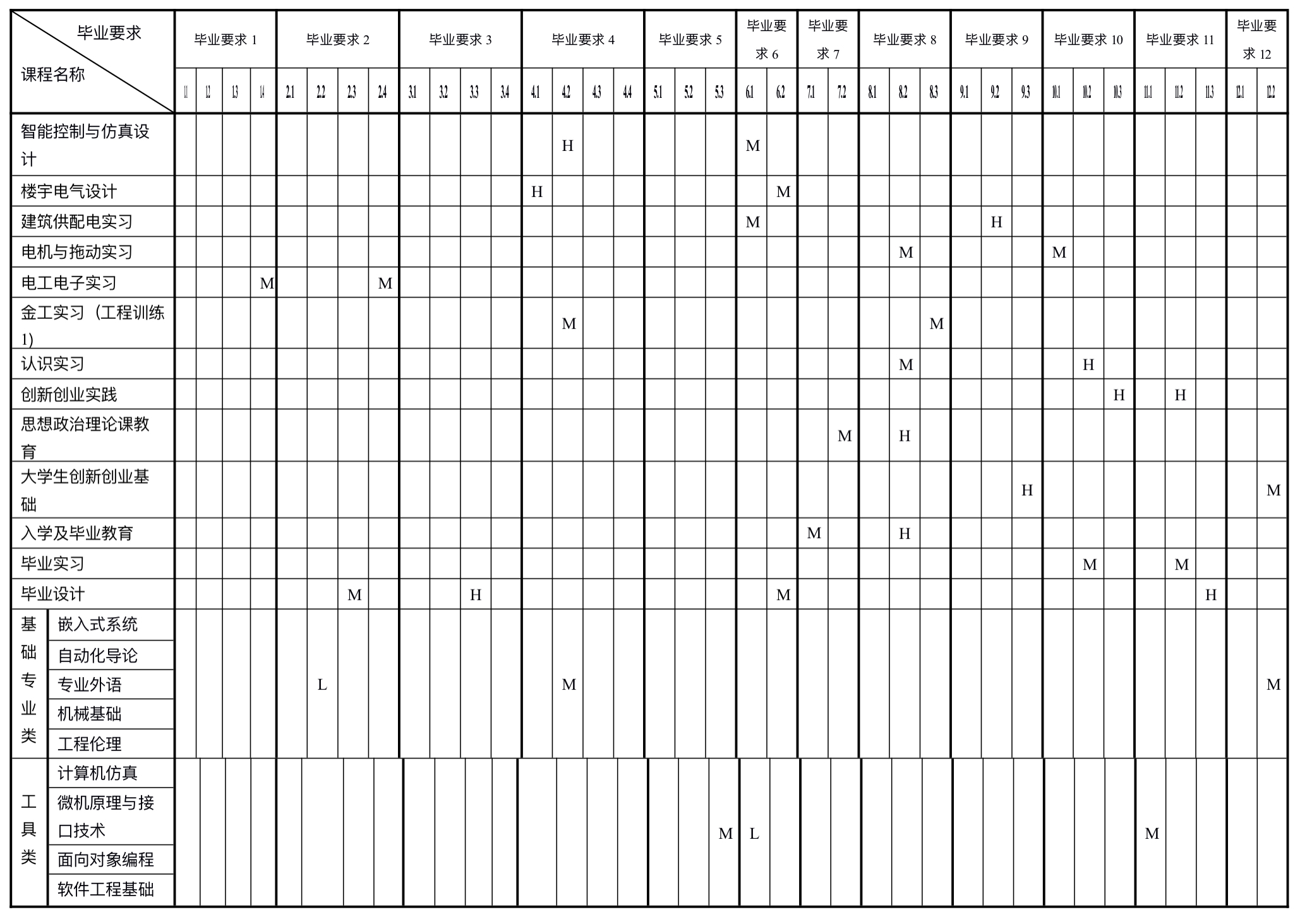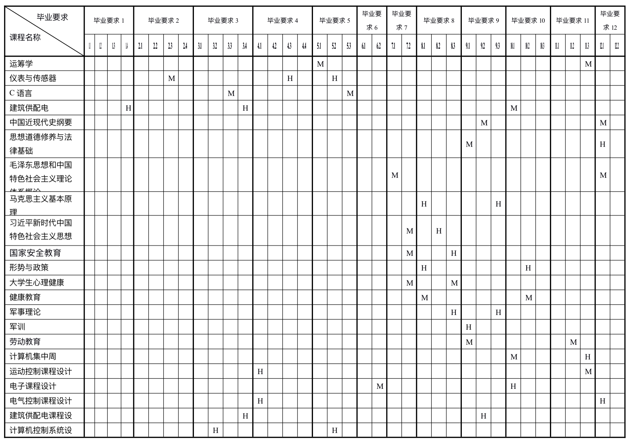 4.2 课程体系对毕业要求的支撑对应关系矩阵