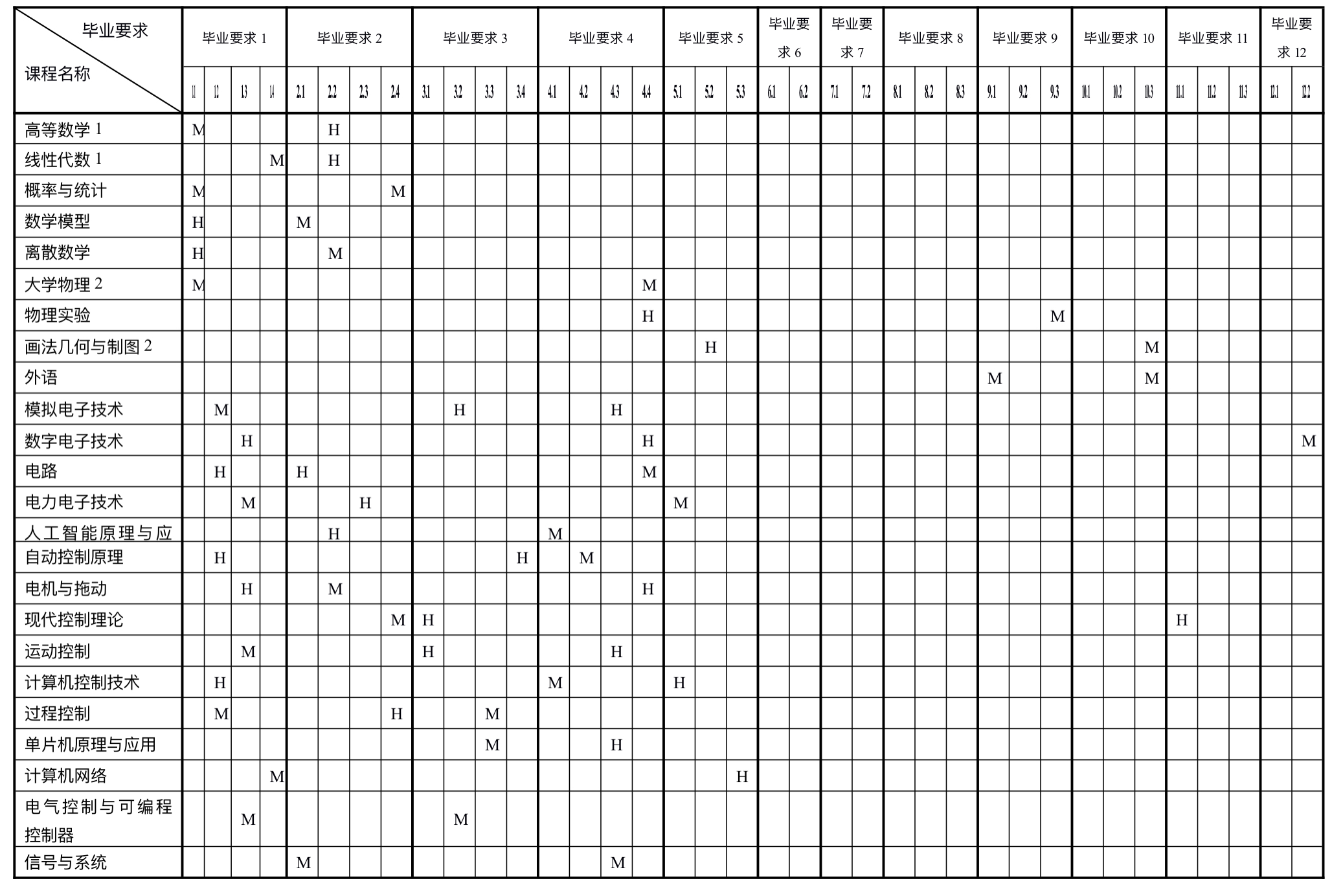 2、课程体系对毕业要求的支撑
